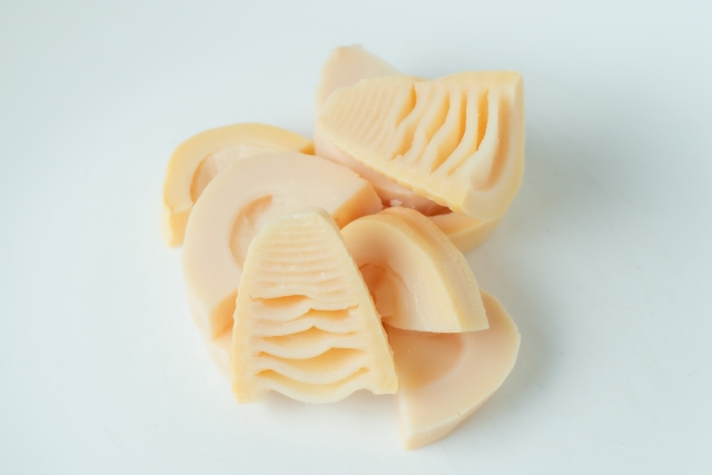 「たけのこ」は、竹の地下茎から生える若い芽のことです。春が旬で、独特の食感と風味があり、日本料理で広く使われます。孟宗竹や真竹など種類があり、煮物、炒め物、炊き込みご飯などに調理されます。アクが強いため、米ぬかで下茹でしてから使うのが一般的です。