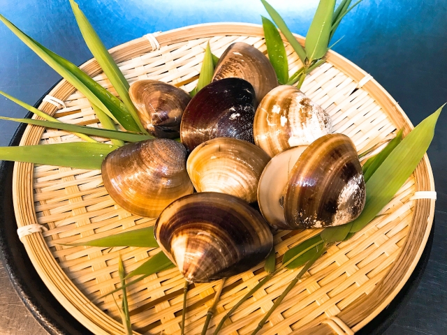 潮の香りと旨味が特徴の二枚貝です。味噌汁やお吸い物、酒蒸しなどに使われ、特に春先の旬の時期は身がふっくらとして美味しく、古くから親しまれている食材です。ひな祭りなどの祝いの席にも欠かせません。(98文字)