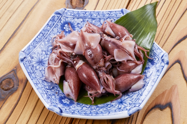 富山湾などで獲れる、春の風物詩です。体長数センチの小さなイカで、その名の通り、青白く光る幻想的な姿が特徴。刺身や酢味噌和え、天ぷらなどで美味しくいただけます。(95文字)